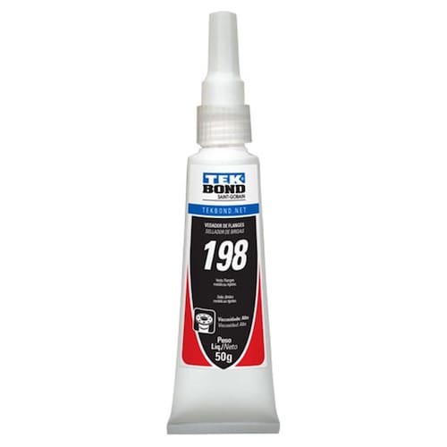 Cola Elimina Juntas Tek198 Alta Temperatura -60 A 150°C Com 50gr O adesivo Tekbond 198 é um vedante químico anaeróbico tixotrópico, de alta viscosidade, média resistência à desmontagem e alta resistência à pressão. É recomendado principalmente para união e vedação de flanges metálicas rígidas, tampa de motores, caixas de engrenagens, podendo ser utilizadas também em flanges de alumínio que necessitam de boa resistência química. CARACTERÍSTICAS:É um adesivo anaeróbico monocomponente, uma vez aplicado evita a corrosão e impede vazamentos entre as conexões metálicas. MODO DE USO:1. Para um melhor desempenho, as superfícies devem ser limpas, isentas de oleosidade e sujeira.2. Para materiais inativos como aço inox, alumínio, ferro fundido e zamac recomendamos a utilização do Ativador T: acelerador de cura para os adesivos anaeróbicos (ativa e limpa superfícies metálicas ou inertes).3. Aplicar o adesivo no local ao qual se deseja unir, espalhando-o uniformemente em forma de filete contínuo em uma das superfícies do flange.4. Monte as peças e aperte os encaixes até que o alinhamento apropriado seja obtido.5. Os encaixes devem ser apertados o mais rápido possível para que não haja a formação de calços. PRECAUÇÕES: Manter fora do alcance das crianças. Manter em local fresco a temperatura de 15 a 25°C, longe de metais e produtos químicos. DADOS TÉCNICOS:Viscosidade (cP): 500.000 a 1.000.000Temperatura de Trabalho (ºC): - 60 a 150Preenchimento de Folgas (mm): 0,25Cura inicial: = 300 minutosCura total: 24 horasResistência à pressão N/mm² (PSI): = 35 (= 5.000)