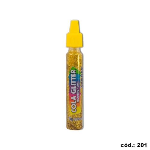 Cola glitter 15g 201 ouro - 029050201para fazer colagens, decorar e pintar sobre papel, papel cartão e cartolina.Possui brilho intenso com glitter.Lavável não mancha a roupa .Registro inmetro000 325/2014