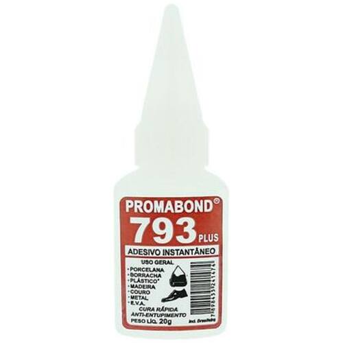 Detalhes do produto: Não Informado: Cola instantanea 793 Promabond 20gr Descrição O Adesivo Instantâneo Permabond 793 possui bico econômico antientupimento e aplicação precisa. É ideal para a colagem de substratos porosos, metais, plásticos, madeiras, borrachas e muito mais. Pode ser ultilizado em diversos tipos de aplicações. Na indústria automobilística, indústria calçadista, fabricação de móveis e indústria madeireira em geral, fabricação, montagem e fechamento de embalagens, indústria eletroeletrônica, fabricação de eletrodomésticos, indústria têxtil, manutenção industrial, artesanato, hobby modelismo, consumo, entre outros. Seu tempo de fixação é de 03 a 10 segundos dependendo do substrato. Vantagens Aplicação fácil e limpa. Rapidez na fixação. Marca: Não Informado Ean: 7898455241184