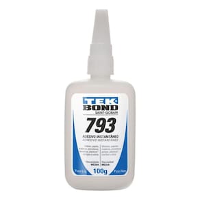 O adesivo TEKBOND - 793 é um adesivo à base de cianoacrilato de média viscosidade desenvolvido para colagens que necessitam de alta velocidade de cura em substratos de difícil adesão, principalmente para materiais porosos. Adere diversos tipos de materiais, como compostos de borracha, EPDM, borracha nitrílica, neoprene, EVA e Viton. É um produto monocomponente e não requer mistura. O processo de cura inicia-se quando uma fina camada de adesivo é aplicada entre as superfícies, entrando em contato com a umidade do ar atmosférico. Marca: Não Informado