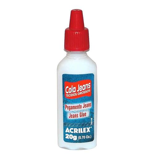 Cola Jeans 20G Acrilex Cola para Jeans Acrilex 20g. Desenvolvida especialmente para colar tecidos grossos como jeans e lonas. Para trabalhos de colagem de tecido sobre tecido. - Não indicada para tecidos finos e claros, sujeitos a manchas - Conteúdo: 20g - Não tóxica. - Pronta para uso. - Secagem ao ar. - Resistente à lavagens. - Acabamento incolor após a secagem. MODO DE USAR - Aplicar com o próprio bico aplicador e se necessário, espalhar com o pincel. Unir as duas partes dos tecidos a serem coladas. - Aguardar 72 horas para lavagem. Ean: 7891153000879