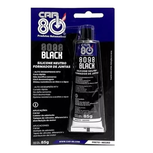 SILICONE NEUTRO PRETO EM BISNAGA DE 85 GRAMAS, INDICADO PARA VEDACAO DE PE?AS FLANGEADAS, VEDACAO DE CARTER, CARCA?A DO DIFERENCIAL E CAIXA DE TRANSMISSAO. CURA SEM CONTRACAO EM TEMPERATURA AMBIENTE, FORMANDO UM SELANTE EL?STICO, PROPORCIONANDO PERFEITA VEDACAO CONTRA VAZAMENTOS DE OLEO, AGUA E OUTROS FLUIDOS. ALTA RESISTENCIA A PRESSAO, VIBRACAO E AGENTES QUIMICOS COMO OLEO.