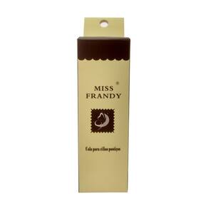 Cola para cílios postiços com garfo auxiliar miss frandy A cola para cílios postiços com garfo auxiliar miss frandy promove perfeição na colagem e durabilidade. Modo de usar: 1- retire os cílios postiços com uma pinça. Verifique o tamanho dos cílios postiços conforme o tamanho exato com seus olhos, se for necessário corte as extremidades laterais dica: para saber o quanto você deve cortar, compare-os com o tamanho da linha de seus cílios e deixe-os um pouquinho menor . 2- com uma pinça, segure as cerdas e passe a cola para cílios em toda a linha. 3- espere 5 segundos e aplique os postiços rentes aos seus cílios. 4- cole os cílios postiços, começando pelo canto externo dos olhos. 5- aplique-os na raiz dos seus cílios naturais e espere secar. 6- espere mais uns 20 segundos e quando a cola estiver seca, aplique o curvex e várias camadas de rímel. Isso vai juntar seus cílios aos postiços e deixar o look mais natural. 7- para retirar, utilize um demaquilante que não arda nos olhos. Passe na raiz dos cílios até descolá-los completamente.