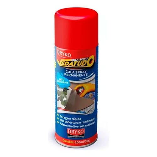 Cola spray vedatudo é um adesivo a base de elastômero sintético de fixação permanente, indicado para uso em geral de peças leves com rápida e fácil aplicação e sem desperdício. Onde aplicar :: papel de parede, papel em geral e papelão :: acetato e alguns plásticos :: feltro e tecidos :: cortiça, couro e carpete :: espumas, isopor e madeira vantagens :: fácil aplicação :: não escorre :: não enruga a superfície :: alto poder de cobertura e rendimento :: adere em diversos tipos de materiais :: secagem e cola rápida :: jato uniforme sem desperdício dados técnicos :: aspecto: líquido incolor :: temperatura de aplicação c mín. 18 :: tempo de secagem min: 1 a 30' Marca: Não Informado