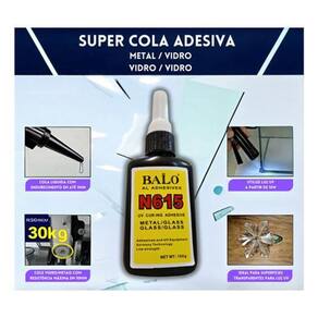 Volume: 100g Cor: Transparente Tipo de Cola: UV Aplicações: Vidro, metal, plástico, acrílico, entre outros. Conteúdo da Embalagem: