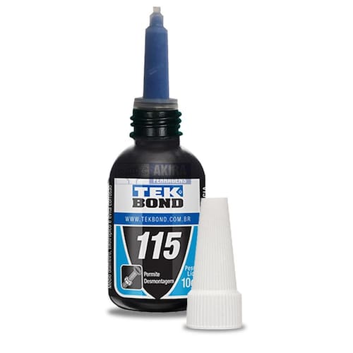 O adesivo TEKBOND 115 é uma trava química tixotrópica de médio torque, Isto é, não escorre e possui média resistência a desmontagem. É um adesivo anaeróbico monocomponente de média viscosidade indicado Para porcas, parafusos e prisioneiros de pequeno e médio porte em geral que Necessitam de desmontagens constantes. Uma vez aplicado evita a Corrosão, impede vazamentos e o afrouxamento devido a vibrações do Conjunto de fixação.