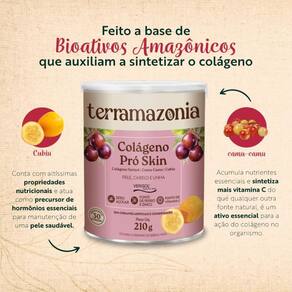Destaques - Peptídeos de Colágeno Verisol - Bioativos Amazônicos que auxiliam a sintetizar o colágeno - Fonte de Vitamina C - Fonte de Zinco e Ferro - Sabor natural de Camu-camu cítrico, semelhante ao sabor da Acerola - 30 doses em 210g Descrição O Colágeno Pro Skin é a combinação perfeita de bioativos e nutrientes servindo como um alimento funcional para uma pele mais firme e viçosa, unhas e cabelos mais fortes, melhora da saúde e da qualidade de vida. É fonte de vitamina C, zinco e ferro. O Verisol, que são os Peptídeos de Colágeno, é obtido a partir de uma tecnologia exclusiva alemã, comprovada como o melhor colágeno para pele do mundo. Atua nas células da pele, restaurando a jovialidade de dentro para fora e prevenindo o envelhecimento cutâneo. O Camu-Camu acumula nutrientes essenciais e sintetiza mais vitamina C do que qualquer outra fonte natural, o qual é um ativo essencial para a ação do colágeno no organismo. O Cubiu conta com altíssimas propriedades nutricionais e atua como precursor de hormônios essenciais para manutenção de uma pele saudável. Vitalidade para seu cabelo, pele e unhas: O colágeno é um componente essencial para manter a saúde do cabelo, as unhas e as articulações, além da elasticidade da pele que se perde ao longo do tempo. A principal função deste suplemento é fornecer resistência ao alongamento dos tecidos e colaborar com o correto funcionamento da cartilagem e dos ossos. Por ser um produto natural e sem aditivos químicos, pode haver uma pequena variação de cor, textura e sabor entre um lote e outro. São frutos integrais na composição do produto, portanto há a presença de fibras residuais. Sugestão de consumo Adicione 7g 1 medidor em 200ml de água, suco ou outra bebida de sua preferência. O colágeno pode ser consumido a qualquer momento do dia. Para um melhor resultado sugerimos o uso do produto de forma regular e contínua. Ingredientes Colágeno Verisol, Camu-camu, Cubiu, glicosídeo de esteviol, bisglicinato de zinco, aroma natural de morango, ácido ascórbico, beterraba em pó. Não contém Glúten, Não contém Lactose.