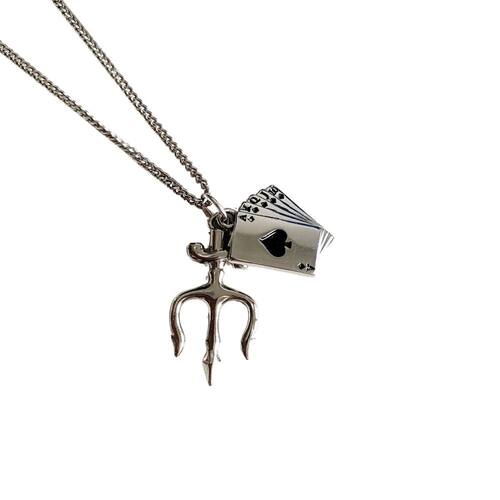Colar 2 Pingentes Baralho E Tridente Ferramenta Exu Prateado