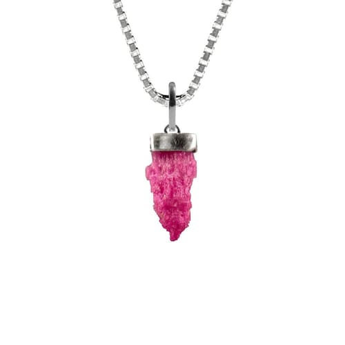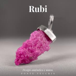 Colar 50Cm Prata 925 Rubi Bruto Natural E Verdadeiro