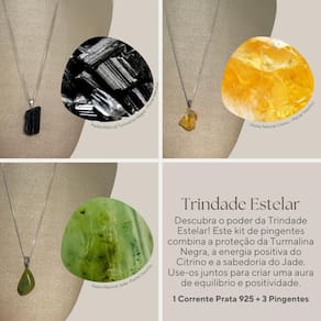Trindade Estelar reflete a união destas três pedras poderosas, cada uma representando um elemento cósmico que conjuga proteção, luz e vida, assim como as estrelas que guiam os viajantes noturnos pelo céu.