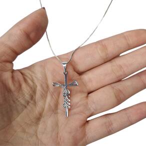 Colar Amuleto Crucifixo Jesus Aparecida - Selecione o Modelo - Cor: Ródio Crucifixo Jesus