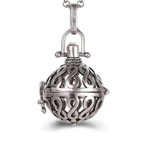 Colar com pingente difusor relicário articulado vazado pequeno, prateado, dourado ou cobre.