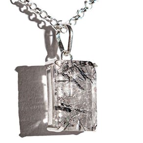 Pingente Retangulo Facetado Especial Pedra Cristal com Inclusão Turmalina Preta Montagem na garra com perinha em Prata 950 para passar o cordão Pedra Genuina com origem garimpo lapidação e montagem manual.   NOME DAS PEDRAS: Cristal com Inclusão Turmalina Preta   COR DAS PEDRAS: Translucido com Canudos de Turmalina Preta (Foto Ilustrativa)   CORTE DAS PEDRAS: Retângulo Facetado (Baguette)   CLARIDADE DAS PEDRAS: Brilhoso e Semi Transparente   MEDIDA DAS PEDRAS: 16 x 08 Milimetros Aproximadamente (Varia de acordo com o estoque)   PESO TOTAL DA JÓIA: 10 Quilates Aproximados   MONTAGEM: Garra e Presilha Prata 950    ORIGEM: Montagem Curvelo MG   Por ser pedra natural, podem apresentar variações em suas tonalidades e grafismos. Há também a possibilidade de ocorrerem pequenas inclusões que irão se assemelhar a fissuras, mas que são normais de minerais autênticos de garimpo. Hidratação com óleo mineral.