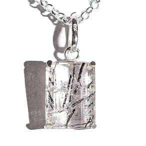 Colar baguette turmalina preta incrustada no cristal com garra na prata: deslumbrante peça que adiciona brilho e elegância a qualquer roupa.