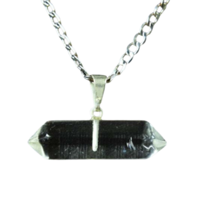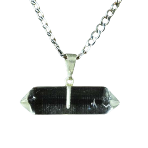 Pingente Bi Ponta Cristal Natural pedra de garimpo com lapidação artesanal montado com pino e presilha Prateado, ideal para colar e pulseiras, ja vai montado.