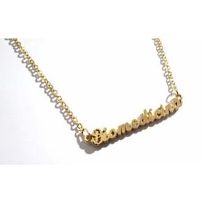 Colar Biomedicina Biomédica Escrito Folheada A Ouro 18K