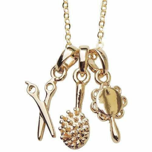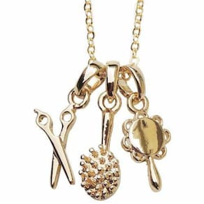 Colar Cabeleireira Escova Tesoura Espelho Folheado Ouro 18K