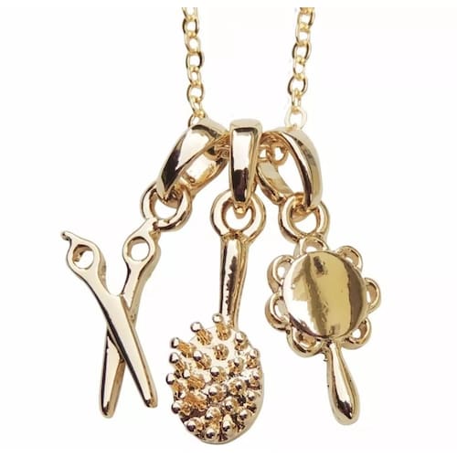 Colar Cabeleireira Tesoura Espelho Folheado A Ouro 18k