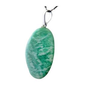 Pingente Cabochão pedra Amazonita Verde Natural castoação Prata 950 ( PRATA DE LEI)