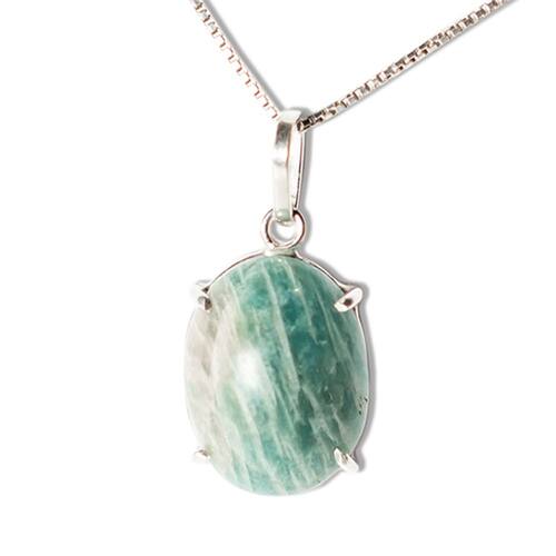 Colar Cabochão Oval Pedra Amazonita Verde Montagem na Garra em Prata 950 - uma peça deslumbrante que certamente te fará se destacar! Adquira já em seu acervo.