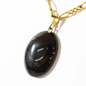 Pingente Cabochão Pedra OBSDIANA NEGRA Lapidação Cabochão Oval, mineral de garimpo pedra da familia do quartzo calcedonia variação cor negra