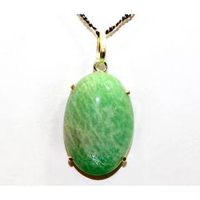 Pingente Cabochão Oval Liso Pedra Amazonita Verde Montagem na garra com perinha em Douradopara passar o cordão Pedra Genuina com origem garimpo lapidação e montagem manual.