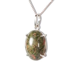 Colar Cabochão Oval Pedra Unakita Montagem na Garra em Prata 950 - uma peça deslumbrante que certamente te fará se destacar! Adquira já em seu acervo.