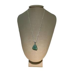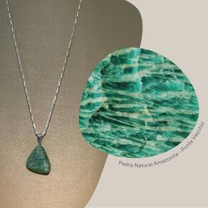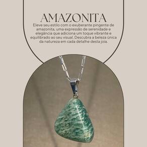 Este pingente de amazonita exibe a beleza tranquila da natureza, com sua coloração azul-esverdeada que remete às águas amazônicas. Seu acabamento autêntico emoldura a pedra, destacando sua textura natural e cor vibrante.