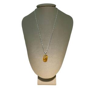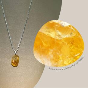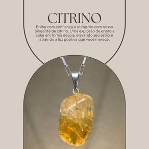 O pingente de citrino brilha com a luminosidade do sol capturada em cristal, apresentando uma forma orgânica que realça a riqueza natural da pedra. Sua montagem simples destaca a beleza inata e a cor vibrante da gema.