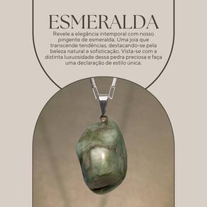 Este pingente de Esmeralda cativa com seu verde profundo e nuances naturais, uma pedra bruta que carrega a beleza selvagem da terra dentro de si.