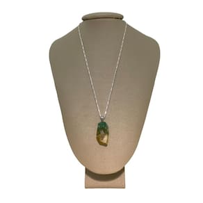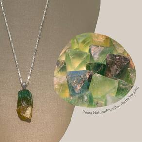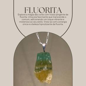 O pingente de Fluorita Bruta fascina com suas camadas translúcidas de verde e amarelo, uma paleta de cores naturais que captura a luz de maneiras surpreendentes.