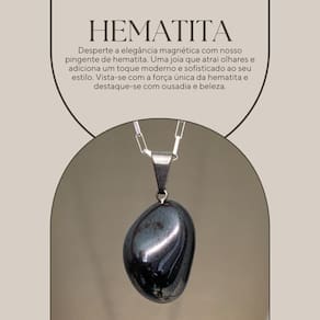 Beleza e Detalhes do Pingente: O pingente de Hematita apresenta um polimento fino que realça seu tom metálico cinza-escuro e os padrões prateados naturais, irradiando uma elegância sóbria.