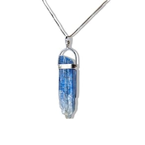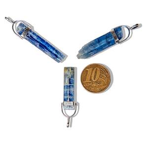 Colar Canudo Cianita Azul Grande Natural Envolto em Prata 950 – Elegância e Serenidade Natural Descubra o poder e a beleza da Cianita Azul com este colar deslumbrante. O pingente de pedra natural, em formato de canudo, é envolto em prata 950, combinando durabilidade com sofisticação. Uma peça única, ideal para quem busca equilíbrio, proteção energética e estilo atemporal. O irá Receberá: Colar de Prata 925 com pingente de Cianita Azul natural, pronto para uso. Detalhes do Colar: Material: Prata 925 Fecho: Lagosta Dimensões: 40 cm de comprimento x 2 mm de largura Peso: Leve, aproximadamente 2 gramas Detalhes do Pingente: Pedra: Cianita Azul natural Corte: Formato de canudo Medidas da Pedra: 30 a 40mm Peso da Pedra: 15 a 20ct, podendo ter variações Montagem: Prata 950 reforçada, com pedra envolta Origem: Garimpo natural da Amazônia, Brasil Propriedades da Cianita Azul: A Cianita Azul é conhecida por suas propriedades tranquilizantes e protetoras. Promove a serenidade mental, o equilíbrio emocional e é uma excelente pedra para meditação e conexão espiritual. Sua energia sutil ajuda a dissipar bloqueios energéticos, trazendo clareza e tranquilidade. Observações: Por ser uma pedra natural, variações em tonalidades, grafismos e pequenas inclusões são características normais que atestam sua autenticidade. A hidratação com óleo mineral pode ser utilizada para preservar o brilho da pedra. Essa mudança reforça o foco em uma descrição mais fluida e elegante para destacar o valor do produto e suas propriedades. Marca: CristaisdeCurvelo