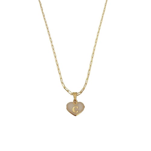 Colar Cartier 45Cm Coração Branco Letra C Banhado Ouro 18K