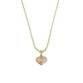Colar feminino modelo Cartier com pingente Coração branco letra inicial P banhado em Ouro 18k. Delicado e cheio de significado, este colar apresenta um pingente em forma de coração, personalizado com a letra inicial. O colar perfeito para quem deseja manter alguém especial sempre perto do coração. Ideal para presentear ou para adicionar um toque pessoal ao seu estilo diário. Este colar banhado a Ouro é mais que um acessório; é uma declaração de amor. Especificações: Colar Cartier com pingente Coração Branco letra inicia P banhados em Ouro 18k. Tamanho do colar: 45 cm. Peso do colar: 3 g. Espessura do colar: 2 mm. Fecho do colar: lagosta. Antialérgico. Tamanho do pingente: 1,4 x 1,2 cm. Pingente banhado a Ouro com aplique de resina branca. Instruções de uso e conservação: Nossas peças são de excelente qualidade. Para manter o brilho e a beleza da joia; por favor siga estas dicas: Evite o uso da joia durante o banho, ter atenção ao aplique de cremes ou perfumes sobre a joia, evitar banho de piscina e mar com a joia; limpe-as sempre com flanela adequada, guarde-as separadamente. Com estes cuidados básicos a joia manterá sempre a originalidade e qualidade. Acompanha linda caixinha de presentes. sobre defeitos de fabricação: 6 meses. Seguindo nossas orientações de uso no certificado de , a joia permanecerá conservada por longos anos ou até décadas Marca: Não Informado