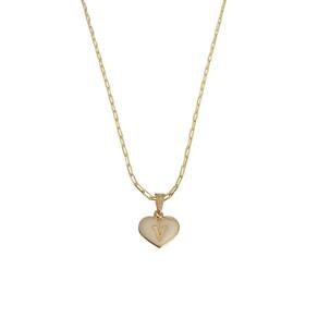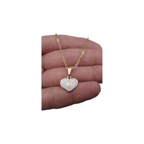 Colar feminino modelo Cartier com pingente Coração branco letra inicial V banhado em Ouro 18k. Delicado e cheio de significado, este colar apresenta um pingente em forma de coração, personalizado com a letra inicial. O colar perfeito para quem deseja manter alguém especial sempre perto do coração. Ideal para presentear ou para adicionar um toque pessoal ao seu estilo diário. Este colar banhado a Ouro é mais que um acessório; é uma declaração de amor. Especificações: Colar Cartier com pingente Coração Branco letra inicia V banhados em Ouro 18k. Tamanho do colar: 45 cm. Peso do colar: 3 g. Espessura do colar: 2 mm. Fecho do colar: lagosta. Antialérgico. Tamanho do pingente: 1,4 x 1,2 cm. Pingente banhado a Ouro com aplique de resina branca. Instruções de uso e conservação: Nossas peças são de excelente qualidade. Para manter o brilho e a beleza da joia; por favor siga estas dicas: Evite o uso da joia durante o banho, ter atenção ao aplique de cremes ou perfumes sobre a joia, evitar banho de piscina e mar com a joia; limpe-as sempre com flanela adequada, guarde-as separadamente. Com estes cuidados básicos a joia manterá sempre a originalidade e qualidade. Acompanha linda caixinha de presentes. sobre defeitos de fabricação: 6 meses. Seguindo nossas orientações de uso no certificado de , a joia permanecerá conservada por longos anos ou até décadas Marca: Anaisa Semijoias