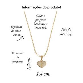 Colar Cartier 45Cm Coração Branco Letra V Banhado Ouro 18K