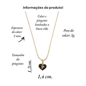 Colar feminino modelo Cartier com pingente Coração negro letra inicial P banhado em Ouro 18k. Delicado e cheio de significado, este colar apresenta um pingente em forma de coração, personalizado com a letra inicial. O colar perfeito para quem deseja manter alguém especial sempre perto do coração. Ideal para presentear ou para adicionar um toque pessoal ao seu estilo diário. Este colar banhado a Ouro é mais que um acessório; é uma declaração de amor. Especificações: Colar Cartier com pingente Coração Negro letra inicia P banhados em Ouro 18k. Tamanho do colar: 45 cm. Peso do colar: 3 g. Espessura do colar: 2 mm. Fecho do colar: lagosta. Antialérgico. Tamanho do pingente: 1,4 x 1,2 cm. Pingente banhado a Ouro com aplique de resina branca. Instruções de uso e conservação: Nossas peças são de excelente qualidade. Para manter o brilho e a beleza da joia; por favor siga estas dicas: Evite o uso da joia durante o banho, ter atenção ao aplique de cremes ou perfumes sobre a joia, evitar banho de piscina e mar com a joia; limpe-as sempre com flanela adequada, guarde-as separadamente. Com estes cuidados básicos a joia manterá sempre a originalidade e qualidade. Acompanha linda caixinha de presentes. sobre defeitos de fabricação: 6 meses. Seguindo nossas orientações de uso no certificado de , a joia permanecerá conservada por longos anos ou até décadas Marca: Anaisa Semijoias