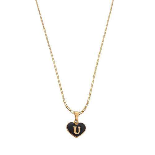 Colar feminino modelo Cartier com pingente Coração negro letra inicial U banhado em Ouro 18k. Delicado e cheio de significado, este colar apresenta um pingente em forma de coração, personalizado com a letra inicial. O colar perfeito para quem deseja manter alguém especial sempre perto do coração. Ideal para presentear ou para adicionar um toque pessoal ao seu estilo diário. Este colar banhado a Ouro é mais que um acessório; é uma declaração de amor. Especificações: Colar Cartier com pingente Coração Negro letra inicia U banhados em Ouro 18k. Tamanho do colar: 45 cm. Peso do colar: 3 g. Espessura do colar: 2 mm. Fecho do colar: lagosta. Antialérgico. Tamanho do pingente: 1,4 x 1,2 cm. Pingente banhado a Ouro com aplique de resina branca. Instruções de uso e conservação: Nossas peças são de excelente qualidade. Para manter o brilho e a beleza da joia; por favor siga estas dicas: Evite o uso da joia durante o banho, ter atenção ao aplique de cremes ou perfumes sobre a joia, evitar banho de piscina e mar com a joia; limpe-as sempre com flanela adequada, guarde-as separadamente. Com estes cuidados básicos a joia manterá sempre a originalidade e qualidade. Acompanha linda caixinha de presentes. sobre defeitos de fabricação: 6 meses. Seguindo nossas orientações de uso no certificado de , a joia permanecerá conservada por longos anos ou até décadas Marca: Anaisa Semijoias