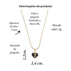 Colar feminino modelo Cartier com pingente Coração negro letra inicial Z banhado em Ouro 18k. Delicado e cheio de significado, este colar apresenta um pingente em forma de coração, personalizado com a letra inicial. O colar perfeito para quem deseja manter alguém especial sempre perto do coração. Ideal para presentear ou para adicionar um toque pessoal ao seu estilo diário. Este colar banhado a Ouro é mais que um acessório; é uma declaração de amor. Especificações: Colar Cartier com pingente Coração Negro letra inicia Z banhados em Ouro 18k. Tamanho do colar: 45 cm. Peso do colar: 3 g. Espessura do colar: 2 mm. Fecho do colar: lagosta. Antialérgico. Tamanho do pingente: 1,4 x 1,2 cm. Pingente banhado a Ouro com aplique de resina branca. Instruções de uso e conservação: Nossas peças são de excelente qualidade. Para manter o brilho e a beleza da joia; por favor siga estas dicas: Evite o uso da joia durante o banho, ter atenção ao aplique de cremes ou perfumes sobre a joia, evitar banho de piscina e mar com a joia; limpe-as sempre com flanela adequada, guarde-as separadamente. Com estes cuidados básicos a joia manterá sempre a originalidade e qualidade. Acompanha linda caixinha de presentes. sobre defeitos de fabricação: 6 meses. Seguindo nossas orientações de uso no certificado de , a joia permanecerá conservada por longos anos ou até décadas Marca: Não Informado