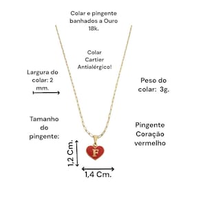 Colar feminino modelo Cartier com pingente Coração Vermelho letra inicial F banhado em Ouro 18k. Delicado e cheio de significado, este colar apresenta um pingente em forma de coração, personalizado com a letra inicial. O colar perfeito para quem deseja manter alguém especial sempre perto do coração. Ideal para presentear ou para adicionar um toque pessoal ao seu estilo diário. Este colar banhado a Ouro é mais que um acessório; é uma declaração de amor. Especificações: Colar Cartier com pingente Coração Vermelho letra inicia F banhados em Ouro 18k. Tamanho do colar: 45 cm. Peso do colar: 3 g. Espessura do colar: 2 mm. Fecho do colar: lagosta. Antialérgico. Tamanho do pingente: 1,4 x 1,2 cm. Pingente banhado a Ouro com aplique de resina branca. Instruções de uso e conservação: Nossas peças são de excelente qualidade. Para manter o brilho e a beleza da joia; por favor siga estas dicas: Evite o uso da joia durante o banho, ter atenção ao aplique de cremes ou perfumes sobre a joia, evitar banho de piscina e mar com a joia; limpe-as sempre com flanela adequada, guarde-as separadamente. Com estes cuidados básicos a joia manterá sempre a originalidade e qualidade. Acompanha linda caixinha de presentes. sobre defeitos de fabricação: 6 meses. Seguindo nossas orientações de uso no certificado de , a joia permanecerá conservada por longos anos ou até décadas Marca: Anaisa Semijoias