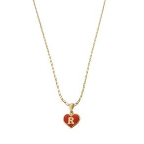 Colar feminino modelo Cartier com pingente Coração Vermelho letra inicial R banhado em Ouro 18k. Delicado e cheio de significado, este colar apresenta um pingente em forma de coração, personalizado com a letra inicial. O colar perfeito para quem deseja manter alguém especial sempre perto do coração. Ideal para presentear ou para adicionar um toque pessoal ao seu estilo diário. Este colar banhado a Ouro é mais que um acessório; é uma declaração de amor. Especificações: Colar Cartier com pingente Coração Vermelho letra inicia R banhados em Ouro 18k. Tamanho do colar: 45 cm. Peso do colar: 3 g. Espessura do colar: 2 mm. Fecho do colar: lagosta. Antialérgico. Tamanho do pingente: 1,4 x 1,2 cm. Pingente banhado a Ouro com aplique de resina branca. Instruções de uso e conservação: Nossas peças são de excelente qualidade. Para manter o brilho e a beleza da joia; por favor siga estas dicas: Evite o uso da joia durante o banho, ter atenção ao aplique de cremes ou perfumes sobre a joia, evitar banho de piscina e mar com a joia; limpe-as sempre com flanela adequada, guarde-as separadamente. Com estes cuidados básicos a joia manterá sempre a originalidade e qualidade. Acompanha linda caixinha de presentes. sobre defeitos de fabricação: 6 meses. Seguindo nossas orientações de uso no certificado de , a joia permanecerá conservada por longos anos ou até décadas Marca: Anaisa Semijoias
