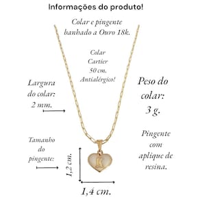 Colar Cartier 50Cm Coração Branco Letra K Banhado Ouro 18K