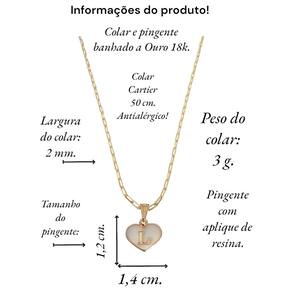 Colar feminino modelo Cartier com pingente Coração branco letra inicial L banhado em Ouro 18k. Delicado e cheio de significado, este colar apresenta um pingente em forma de coração, personalizado com a letra inicial. O colar perfeito para quem deseja manter alguém especial sempre perto do coração. Ideal para presentear ou para adicionar um toque pessoal ao seu estilo diário. Este colar banhado a Ouro é mais que um acessório; é uma declaração de amor. Especificações: Colar Cartier com pingente Coração Branco letra inicia L banhados em Ouro 18k. Tamanho do colar: 50 cm. Peso do colar: 3 g. Espessura do colar: 2 mm. Fecho do colar: lagosta. Antialérgico. Tamanho do pingente: 1,4 x 1,2 cm. Pingente banhado a Ouro com aplique de resina branca. Instruções de uso e conservação: Nossas peças são de excelente qualidade. Para manter o brilho e a beleza da joia; por favor siga estas dicas: Evite o uso da joia durante o banho, ter atenção ao aplique de cremes ou perfumes sobre a joia, evitar banho de piscina e mar com a joia; limpe-as sempre com flanela adequada, guarde-as separadamente. Com estes cuidados básicos a joia manterá sempre a originalidade e qualidade.