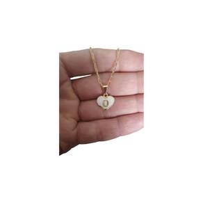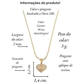 Colar Cartier 50Cm Coração Branco Letra O Banhado Ouro 18K