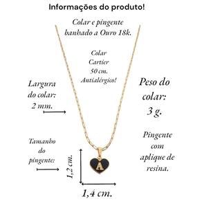 Colar feminino modelo Cartier com pingente Coração negro letra inicial A banhado em Ouro 18k. Delicado e cheio de significado, este colar apresenta um pingente em forma de coração, personalizado com a letra inicial. O colar perfeito para quem deseja manter alguém especial sempre perto do coração. Ideal para presentear ou para adicionar um toque pessoal ao seu estilo diário. Este colar banhado a Ouro é mais que um acessório; é uma declaração de amor. Especificações: Colar Cartier com pingente Coração Negro letra inicia A banhados em Ouro 18k. Tamanho do colar: 50 cm. Peso do colar: 3 g. Espessura do colar: 2 mm. Fecho do colar: lagosta. Antialérgico. Tamanho do pingente: 1,4 x 1,2 cm. Pingente banhado a Ouro com aplique de resina branca. Instruções de uso e conservação: Nossas peças são de excelente qualidade. Para manter o brilho e a beleza da joia; por favor siga estas dicas: Evite o uso da joia durante o banho, ter atenção ao aplique de cremes ou perfumes sobre a joia, evitar banho de piscina e mar com a joia; limpe-as sempre com flanela adequada, guarde-as separadamente. Com estes cuidados básicos a joia manterá sempre a originalidade e qualidade. Acompanha linda caixinha de presentes. sobre defeitos de fabricação: 6 meses. Seguindo nossas orientações de uso no certificado de , a joia permanecerá conservada por longos anos ou até décadas Marca: Não Informado