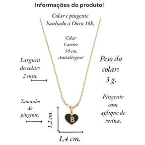 Colar feminino modelo Cartier com pingente Coração negro letra inicial B banhado em Ouro 18k. Delicado e cheio de significado, este colar apresenta um pingente em forma de coração, personalizado com a letra inicial. O colar perfeito para quem deseja manter alguém especial sempre perto do coração. Ideal para presentear ou para adicionar um toque pessoal ao seu estilo diário. Este colar banhado a Ouro é mais que um acessório; é uma declaração de amor. Especificações: Colar Cartier com pingente Coração Negro letra inicia B banhados em Ouro 18k. Tamanho do colar: 50 cm. Peso do colar: 3 g. Espessura do colar: 2 mm. Fecho do colar: lagosta. Antialérgico. Tamanho do pingente: 1,4 x 1,2 cm. Pingente banhado a Ouro com aplique de resina branca. Instruções de uso e conservação: Nossas peças são de excelente qualidade. Para manter o brilho e a beleza da joia; por favor siga estas dicas: Evite o uso da joia durante o banho, ter atenção ao aplique de cremes ou perfumes sobre a joia, evitar banho de piscina e mar com a joia; limpe-as sempre com flanela adequada, guarde-as separadamente. Com estes cuidados básicos a joia manterá sempre a originalidade e qualidade. Acompanha linda caixinha de presentes. sobre defeitos de fabricação: 6 meses. Seguindo nossas orientações de uso no certificado de , a joia permanecerá conservada por longos anos ou até décadas Marca: Não Informado