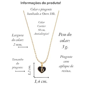 Colar Cartier 50Cm Coração Negro Letra D Banhado Ouro 18K