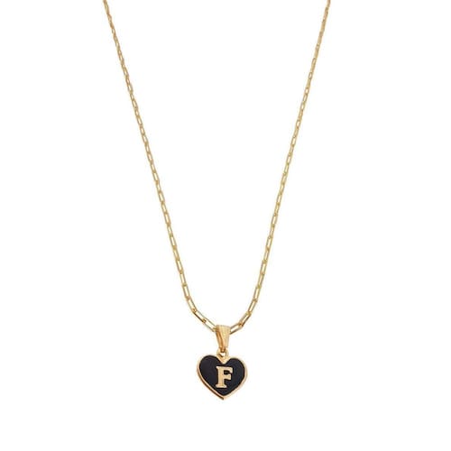 Colar Cartier 50Cm Coração Negro Letra F Banhado Ouro 18K