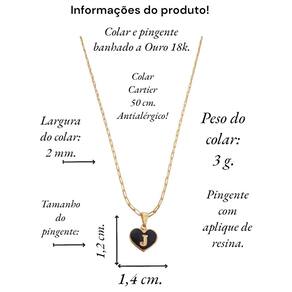 Colar Cartier 50Cm Coração Negro Letra J Banhado Ouro 18K